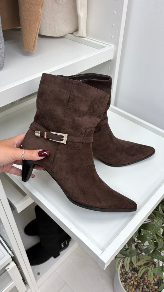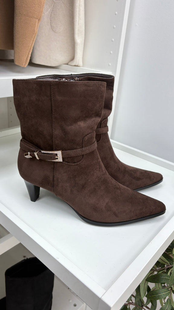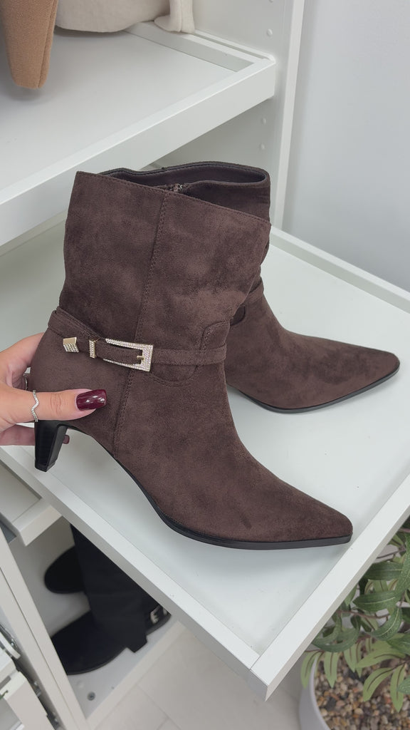 Vickie Faux Suede Buckle Detail Pointed Boots