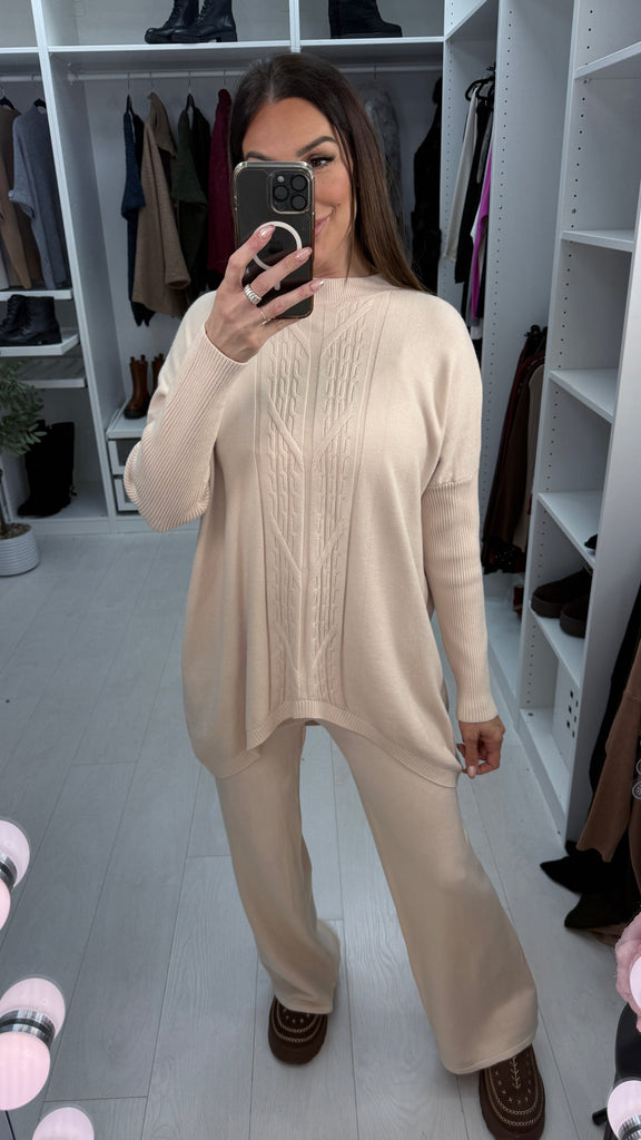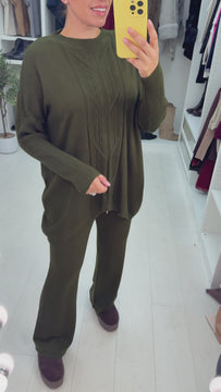The Zelda Plain Textured Detailed Loose Fit Loungewear Set combines comfort with style effortlessly. Featuring a round neck and long fitted sleeves, the top offers a loose fit enhanced by subtle textured details on the front. The wide-leg trousers come with an elasticated waistband, handy pockets, and a tie waist for adjustable comfort. Perfect for relaxing at home or casual outings, this set allows you to feel cozy without compromising on chic simplicity.