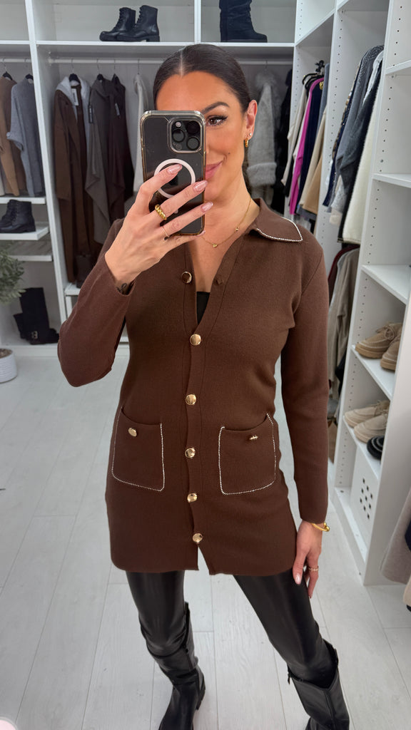 Zosie Button & Diamante Embellished Longline Cardigan